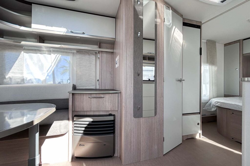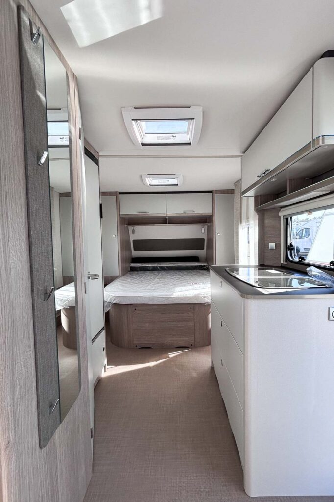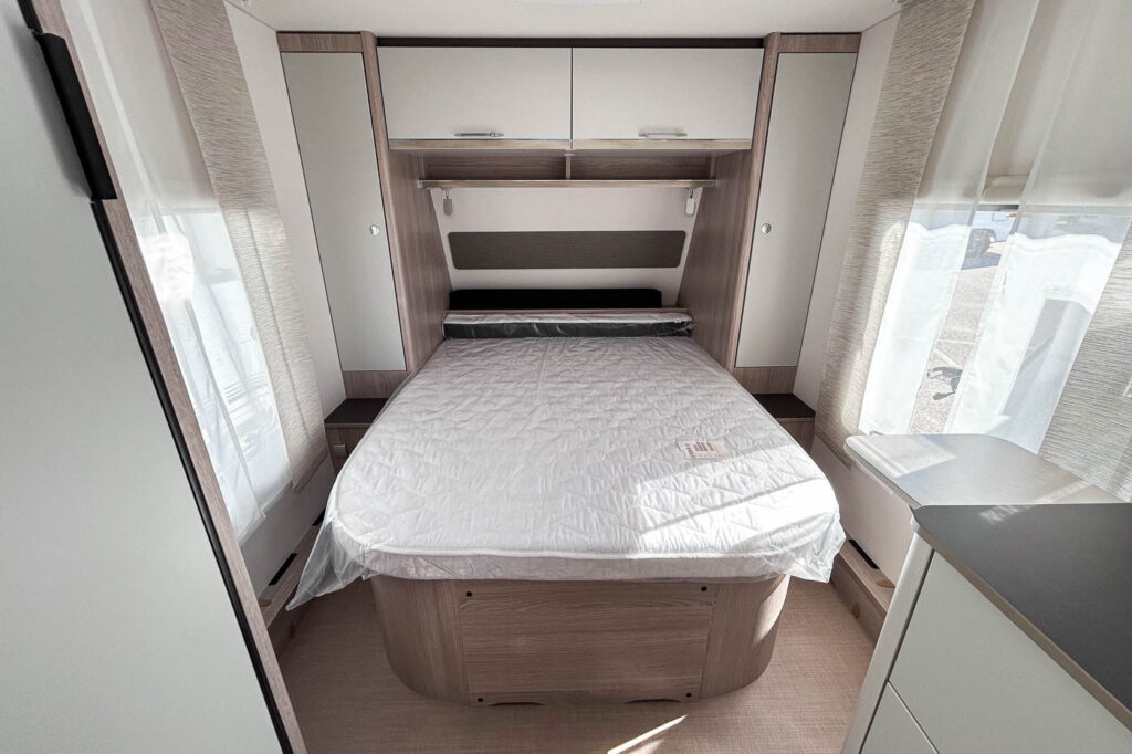 La Burstner Premio 490 TS tiene capacidad para cuatro personas y se caracteriza principalmente por disponer de amplia cama isla fácilmente accesible desde ambos laterales, y con gran espacio de carga en la parte inferior de la cama.