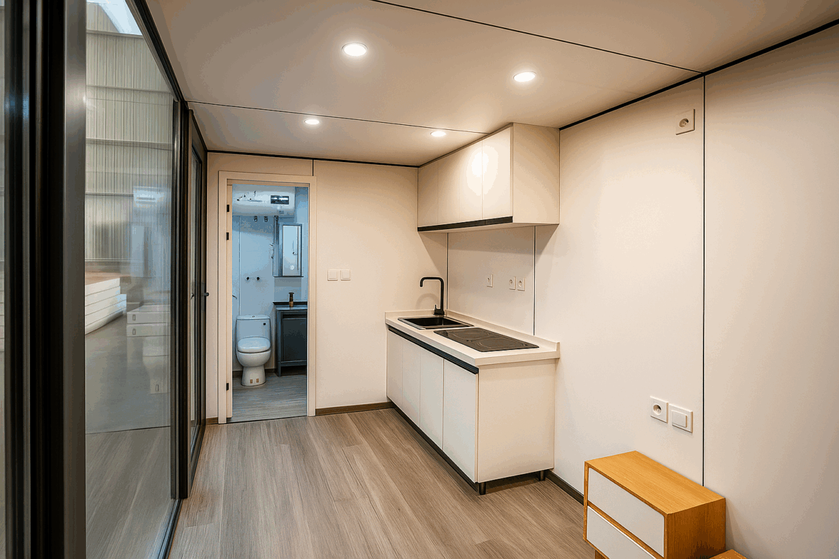 La APPEL CABIN es una casa prefabricada funcional y elegante de 5.8 × 2.2 × 2.45 m, perfecta para quienes buscan comodidad en un espacio reducido. Consta de 1 dormitorio, salón, cocina y baño, ofreciendo todo lo necesario en un formato práctico.