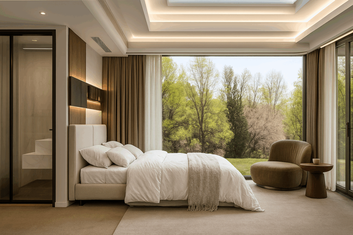 Este exclusivo modelo incluye 1 dormitorio amplio con vistas panorámicas, baño de lujo con acabados premium, vestidor elegante para máxima comodidad, cocina totalmente equipada, lista para usar, control domótico completo de iluminación, climatización y cortinas.