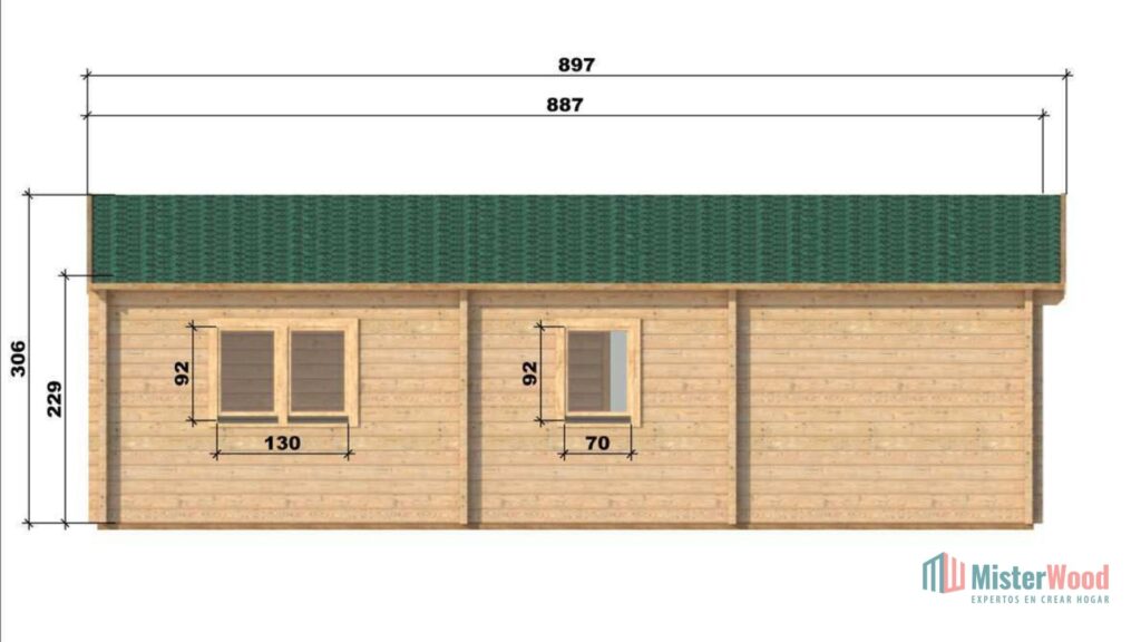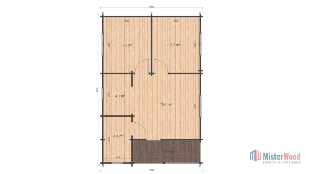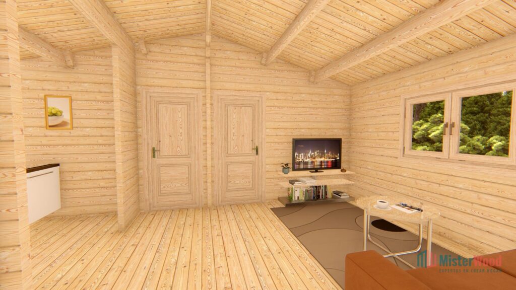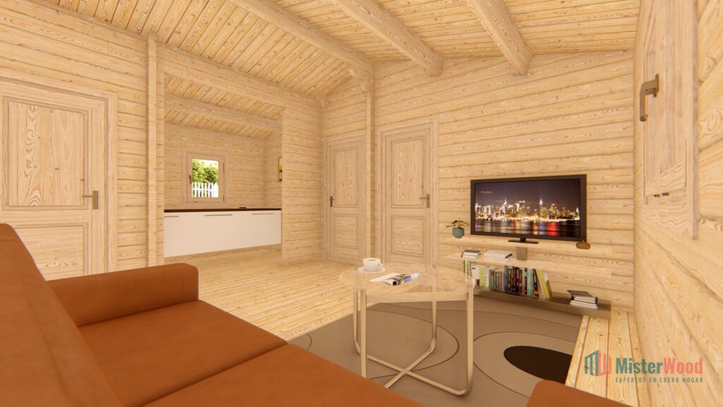 El modelo Leonor es una casa de madera. Con una superficie de 54m², en su interior encontramos una distribución óptima de 2 habitaciones, 1 baño, cocina, salón comedor y terraza techada.