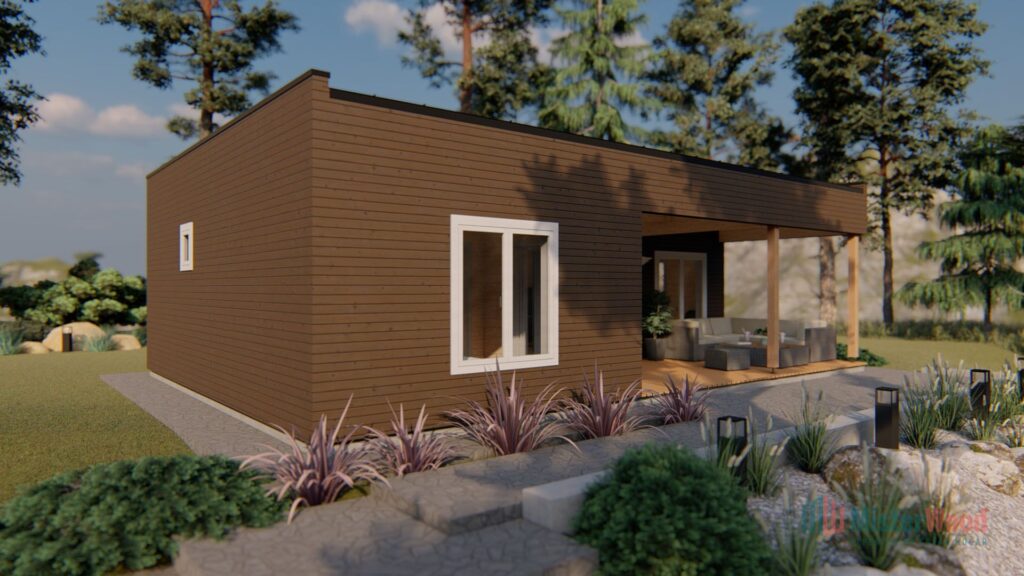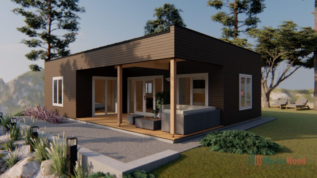 El modelo Olivia con una superficie de 70m², en su interior encontramos 2 habitaciones, 1 baño, cocina, salón comedor y terraza techada.