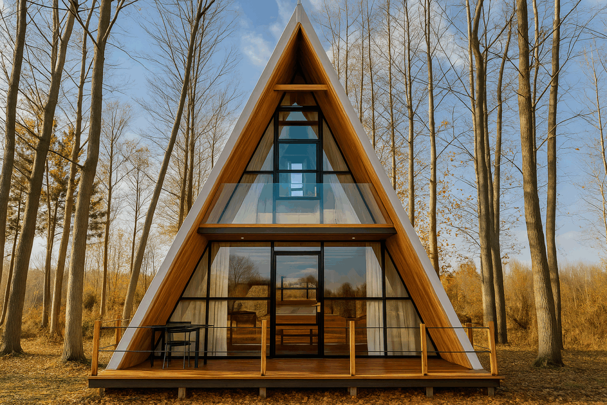 Descubre esta exclusiva casa de madera triangular prefabricada y totalmente desmontable, diseñada para quienes buscan un espacio moderno, versátil y sostenible.Con una superficie total de 80 m², distribuidos en dos plantas diáfanas de 40 m² cada una, ofrece un amplio espacio abierto para adaptarlo a tus necesidades.
