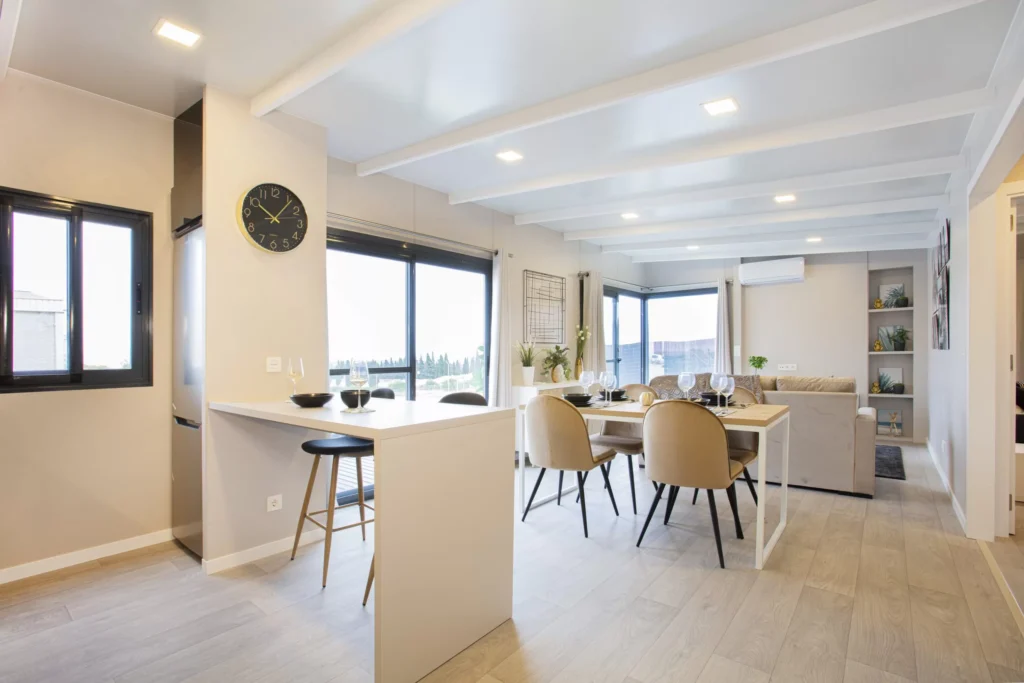 El modelo Alabama se caracteriza por la gran amplitud de sus espacios y la luminosidad que aporta a su interior debido a sus extensos ventanales. Este nuevo modelo destaca al mismo tiempo por la adición de la galería junto a la cocina, lo que le da ese toque más doméstico.
