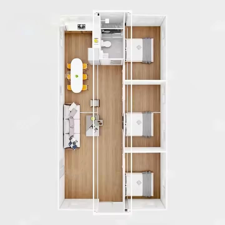 Montaje rápido: estas casas están diseñadas para una instalación rápida, a menudo requieren un mínimo de herramientas y mano de obra. Esta característica es ideal para personas o familias que necesitan un hogar listo en un corto período de tiempo, como para viviendas temporales o fines de vacaciones.
