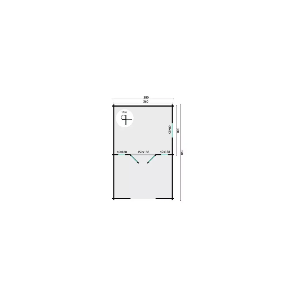 Estas casas de madera tienen una puerta doble, de abertura exterior, con ventanas fijas alargadas de cristal doble de 4-6-4mm y una medida de paso de 159×188 cm. La puerta va provista de una cerradura.