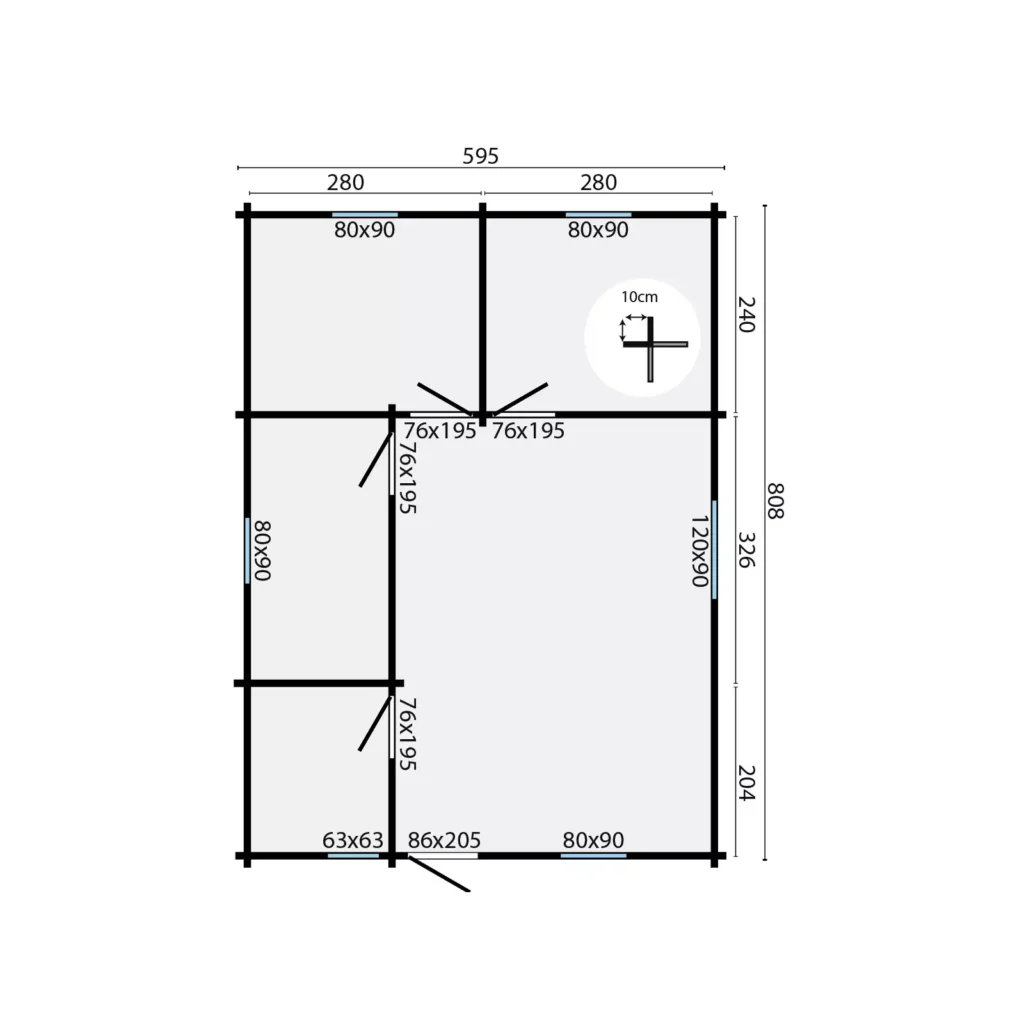 Grosor de madera y ensamblaje: Están fabricadas con lamas de madera machihembradas de 44 y 40 mm de grosor, lo que hace sea una casa muy robusta y le dota de un aislamiento natural como es la madera además de un ambiente muy acogedor.