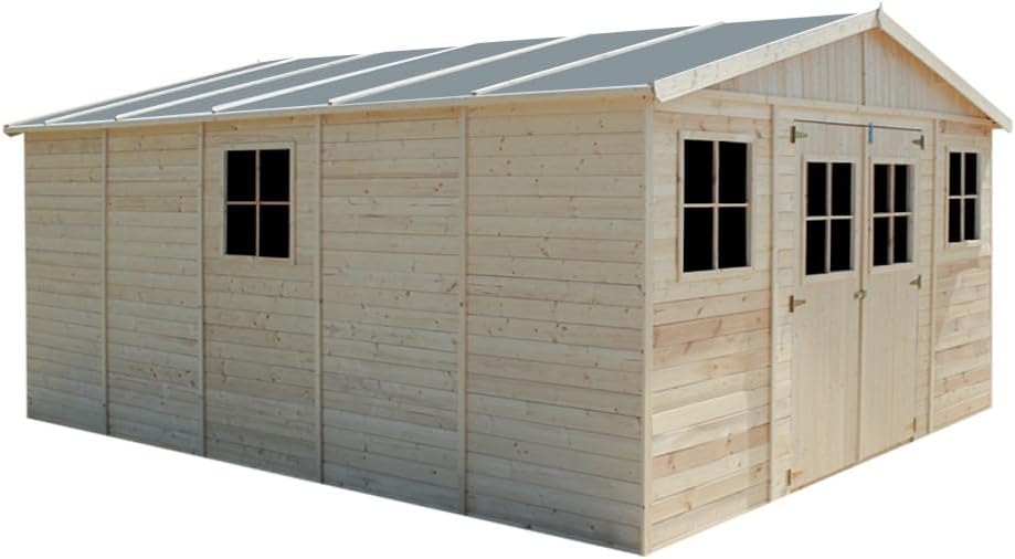 COBERTIZO DE MADERA GRANDE. Generoso tamaño para caminar en este depósito con 20m2 de área interna y un techo de 246 cm de altura. Suficiente espacio para almacenar herramientas, bicicletas, juguetes y cortadoras de césped. Organiza tu jardín y disfruta de tus espacios exteriores más que nunca.