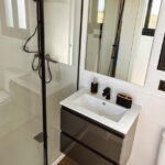 Alicatados en cuarto de baño y frentes de cocina con azulejo vinílico.