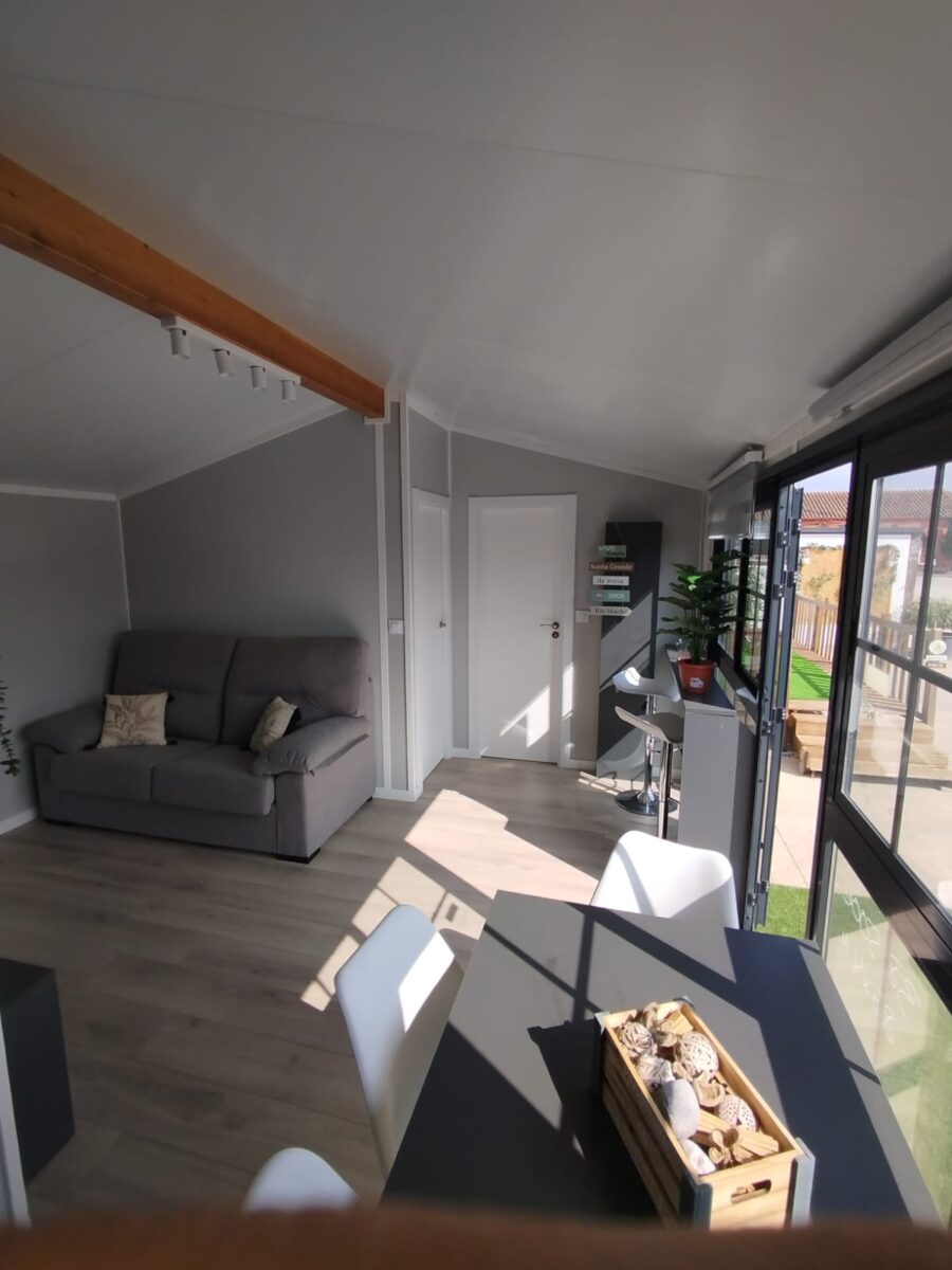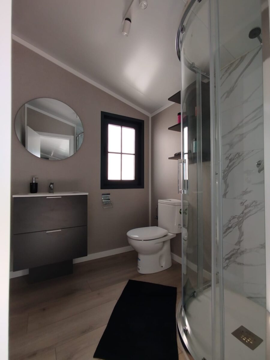MOBIL HOME NUEVO – 8,60m. x 4m. – Esta fantástica casa TOTALMENTE AMUEBLADA 🙌 incluye en el precio el transporte hasta 100 km, colocación y nivelación. Grúa a parte.