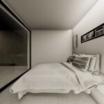Tanto el dormitorio principal como el auxiliar, disponen de grandes ventanales que hacen que estén directamente vinculados al exterior de la vivienda.