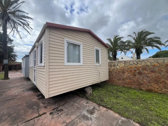 Se trata de una estupenda casa de 5,5m x 4m. con 2 dormitorios, esta en buen estado. Se vende totalmente amueblada y equipada, con camas, armarios, sofas, mesa de salon, termo de gas, cocina amueblada y equipada, con frigorífico, 4 fiegos para cocinar de gas, baño con plato ducha y otro baño con wc, también incluye aire acondicionado.
