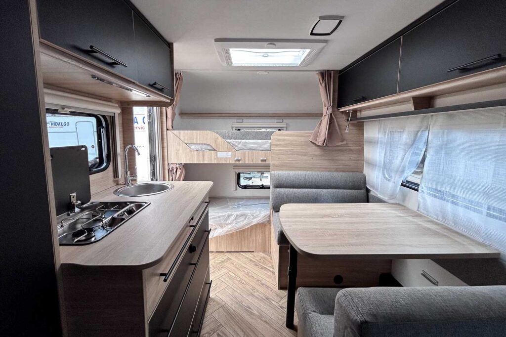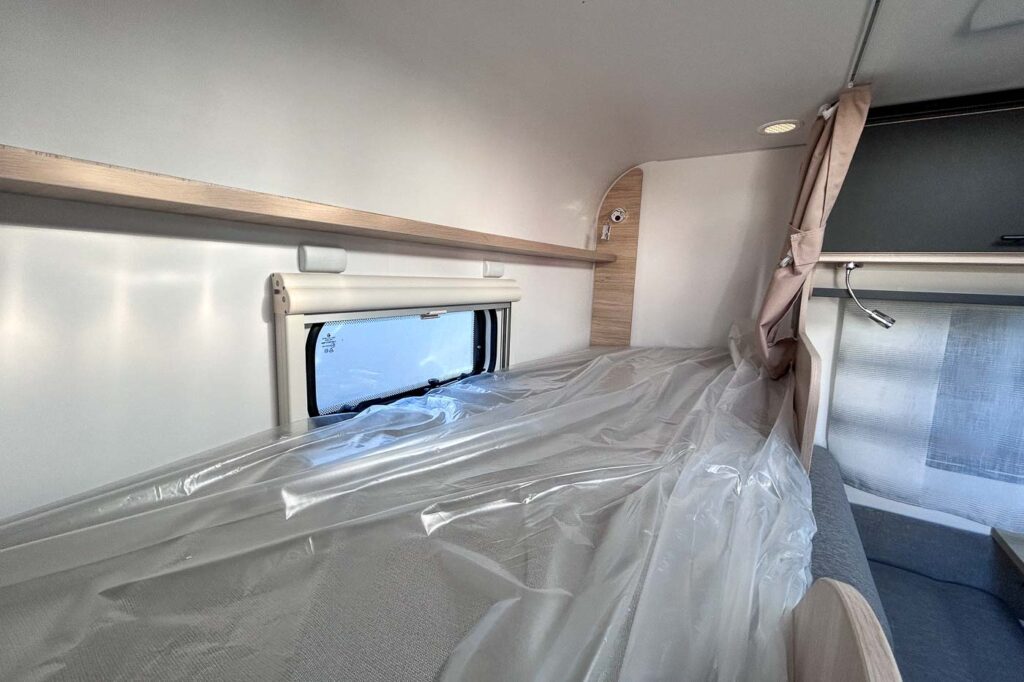 Su distribución se caracteriza por disponer de dos literas así como amplia cama francesa. Dispone de numerosos espacios de almacenamiento que facilitarán la organización de nuestro equipaje.